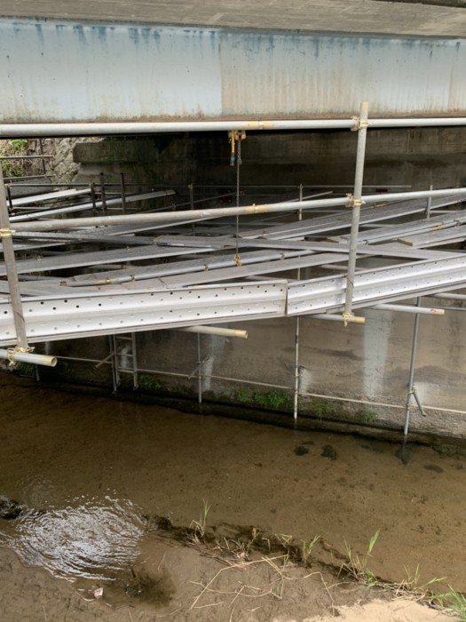 橋桁撤去用足場 ワイヤーブリッジ | 神栖市で鳶工事を営む『株式会社新成工業』|職人を求人募集中!